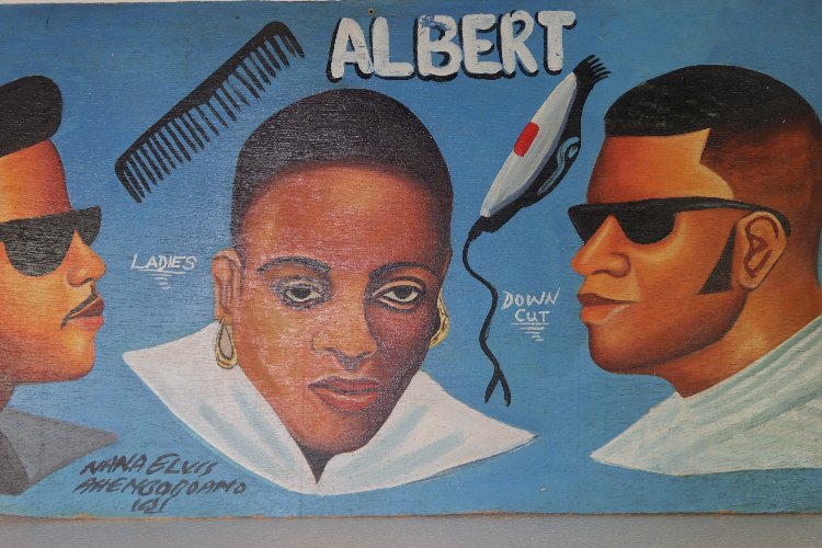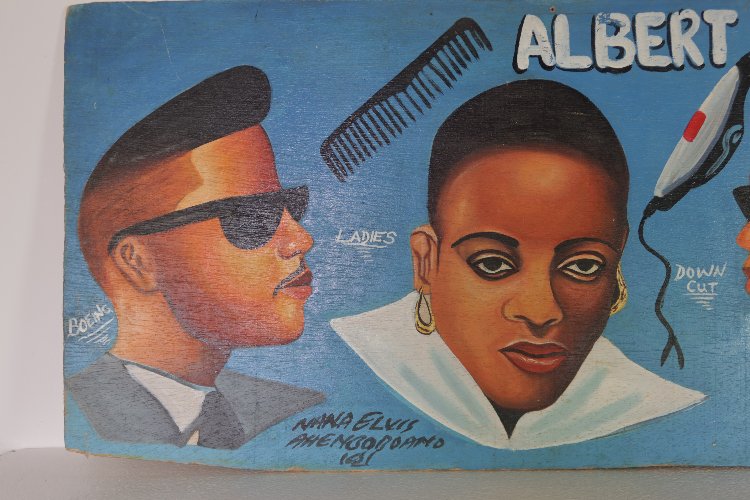 Original West-African vintage hand-painted barbershop sign, ca 1980.Manufactured in Ghana.