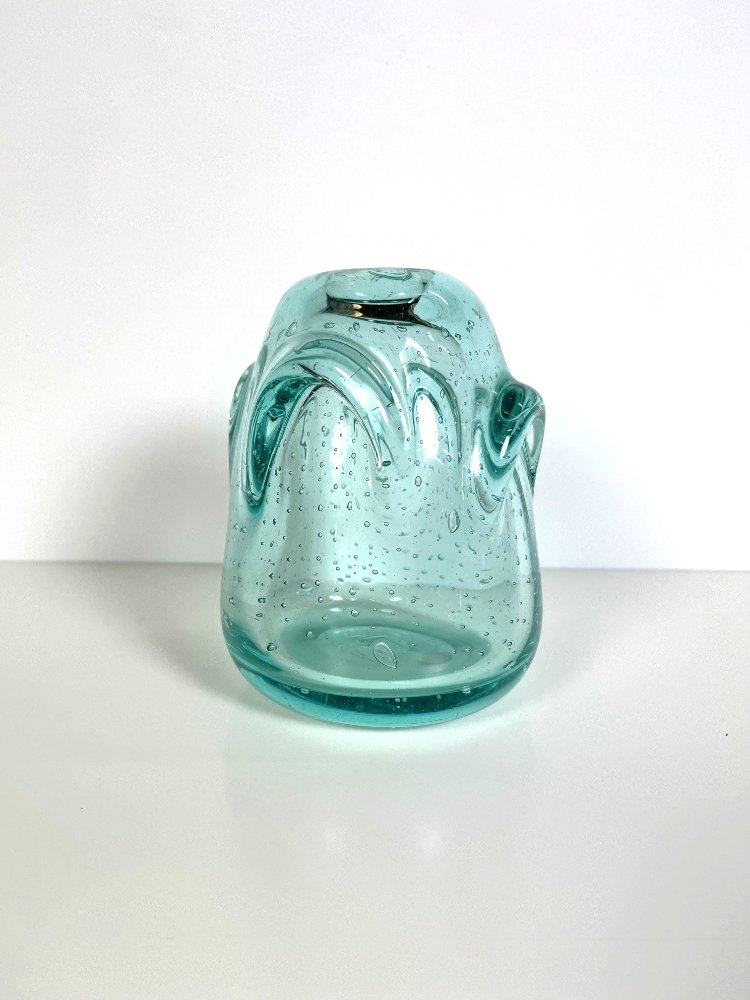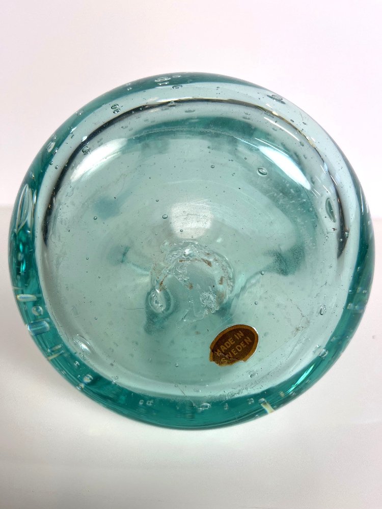 Beautiful hand-blown vintage design clear glass vase, 1940s.The vase is marked with a stickerDesigned by Börne Augustsson.