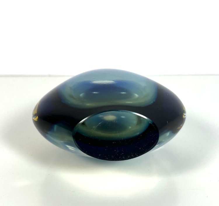 Mid-century modern Murano Sommerso glass vase in white, blue, and yellow, 1960s.Designed by Flavio Poli.Manufactured by Seguso, Italy.