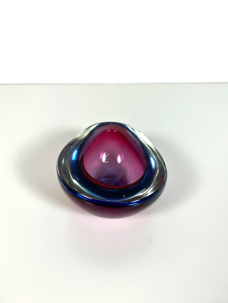 Mid-century modern Murano Sommerso glass bowl in blue and red, 1960s.Designed by Flavio Poli.Manufactured by Seguso, Italy.