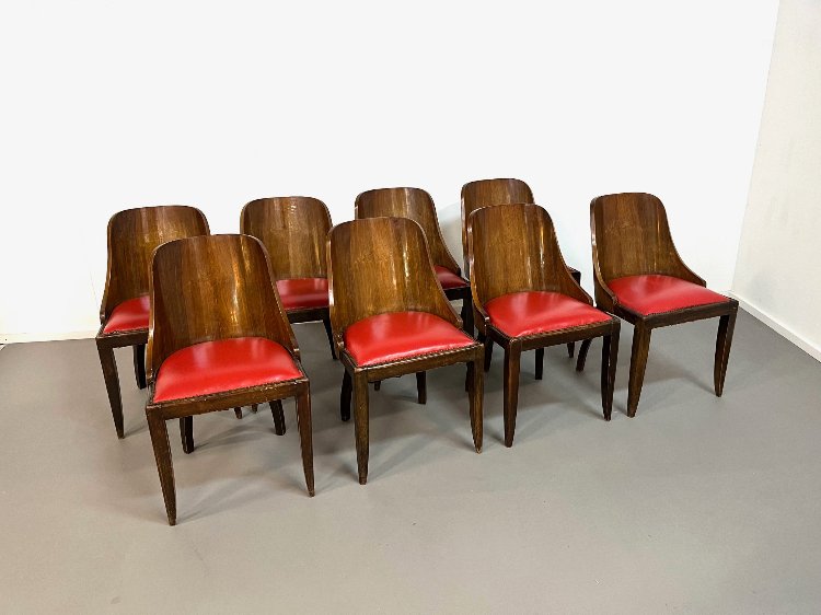 Rare set of 8 Art-deco chairs, ca 1930. The chairs need to be restored. Designed by Frères de Coene. Manufactured by Kortrijkse Kunstwerkstede, Belgium.