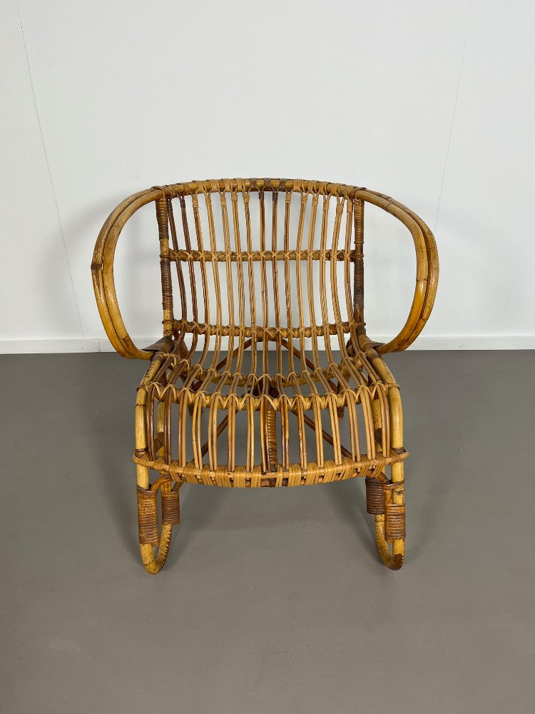 20th-century Dutch vintage design rattan armchair, ca 1960.Manufactured by Rohé, Noordwolde.