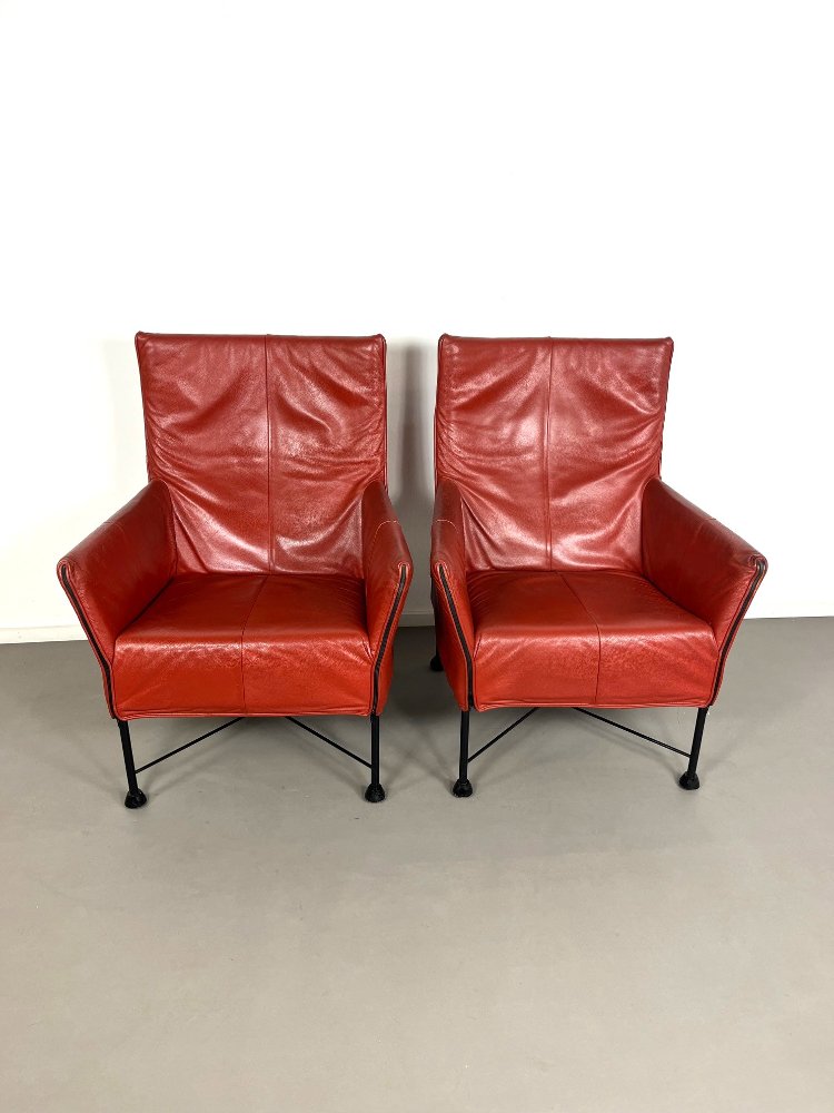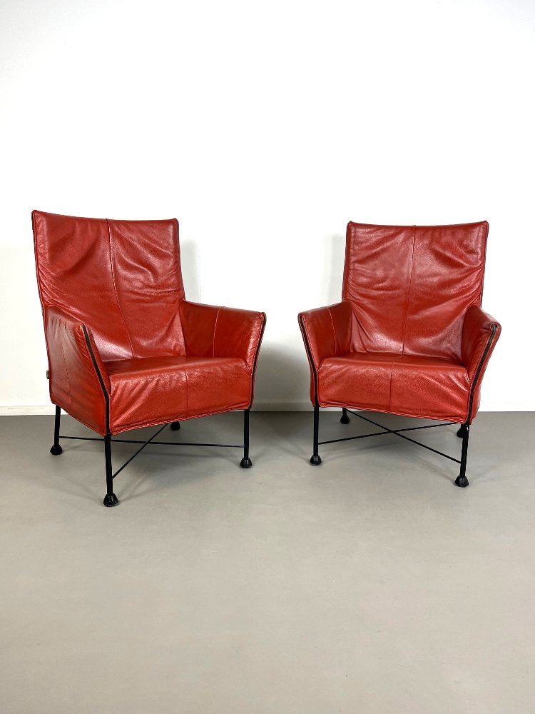 20th-century Dutch vintage design red-brown leather armchairs, ca 1980.