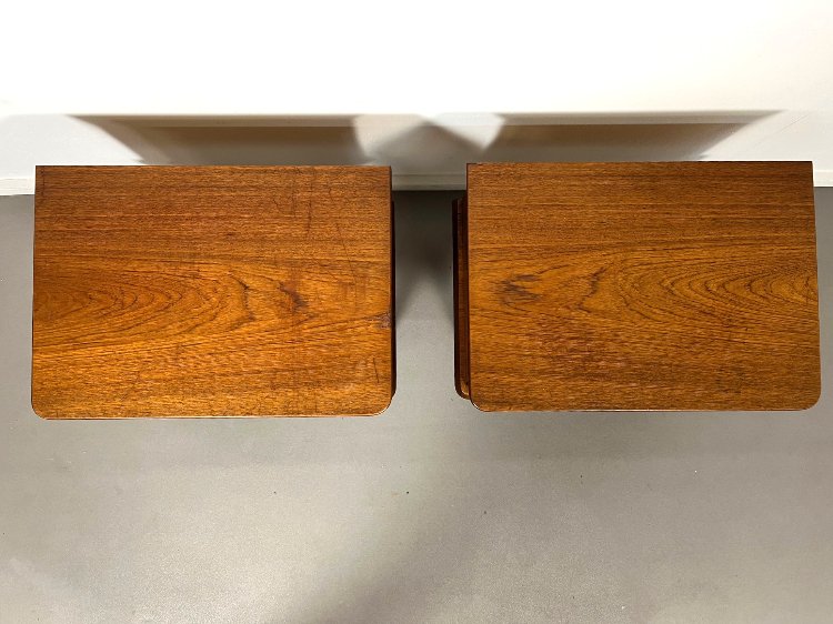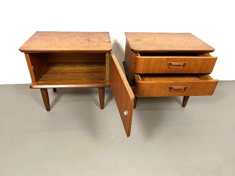 20th-century vintage design Danish teak bedside tables, 1960sManufactured in Denmark.