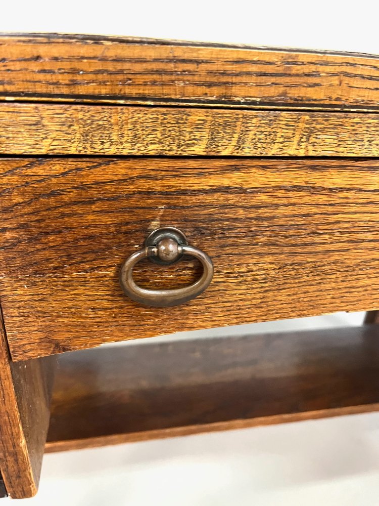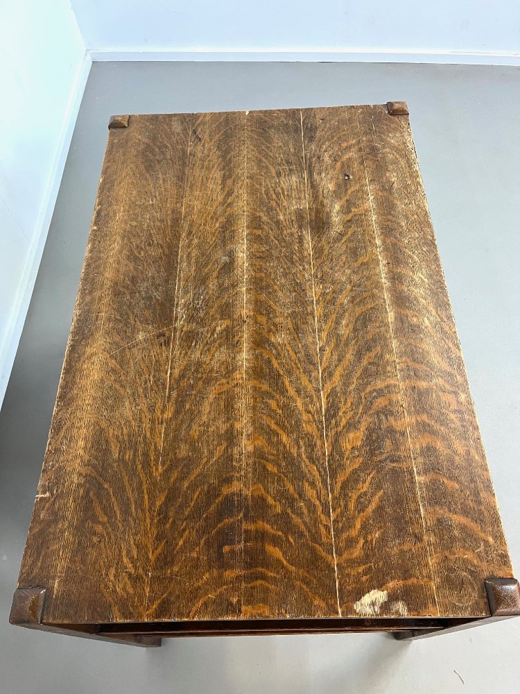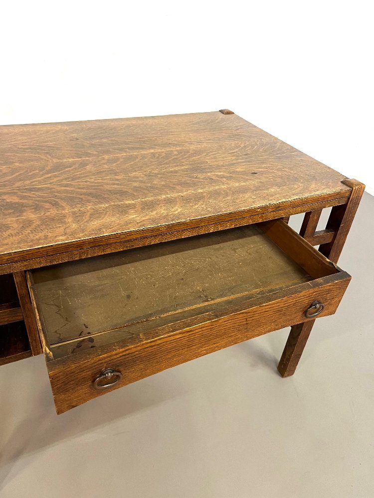 Antique oak Arts and Crafts desk with the original paper label, ca 1920.