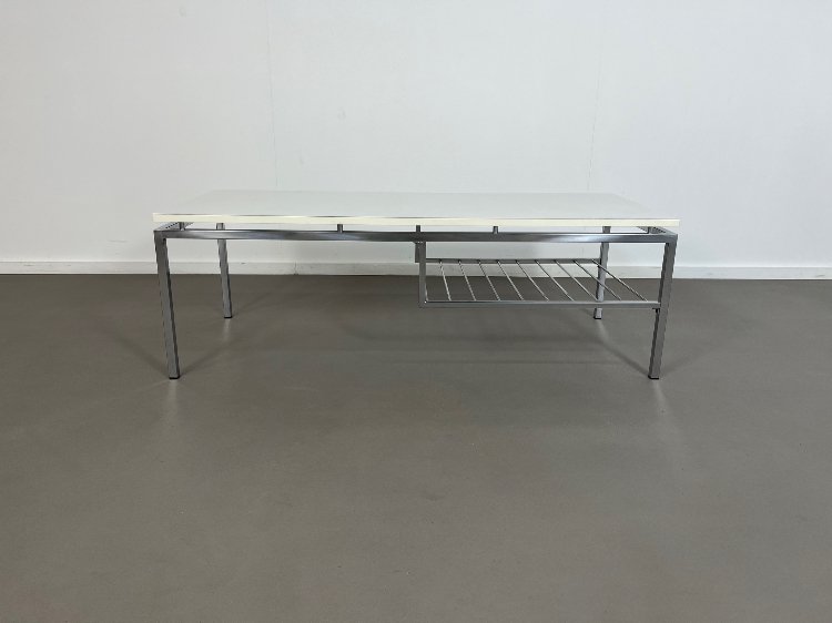 Mid-Century chrome coffee table with a white formica top by Stiemsma 1970s