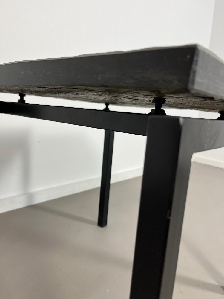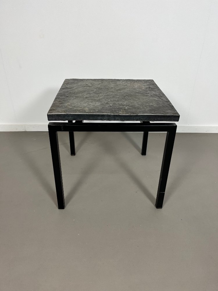 20th-century vintage design square slate side table on a black metal frame, ca 1960.Manufactured in the Netherlands.
