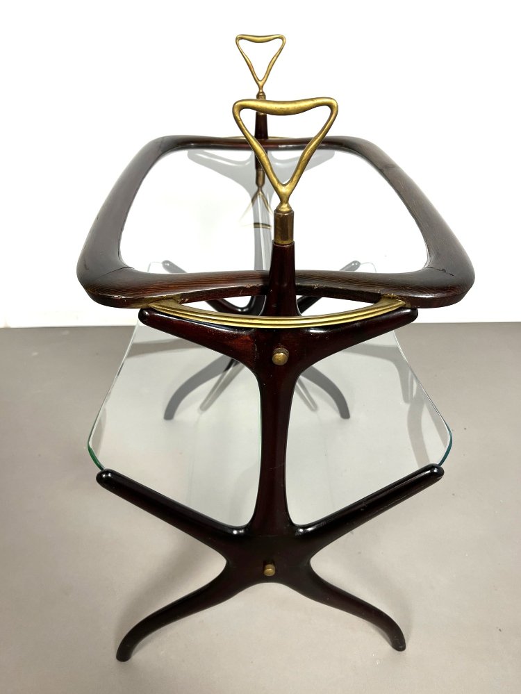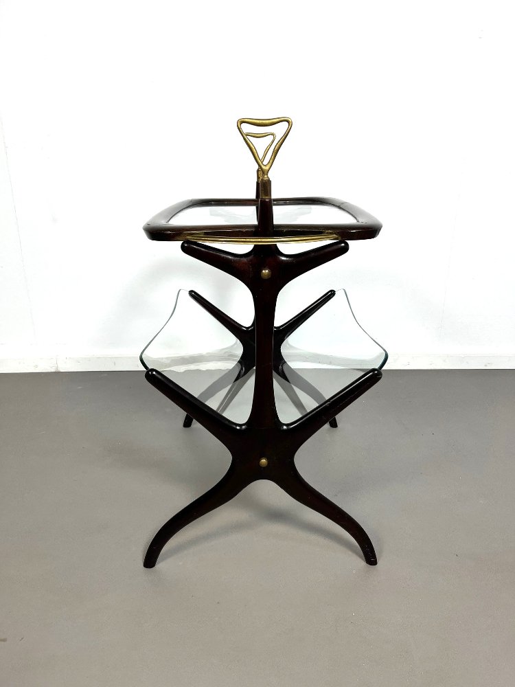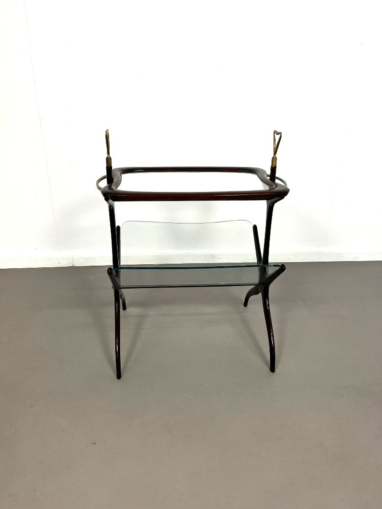 Beautiful Mid-century lacquered wood and glass magazine table, with brass details.The top is a removable tray.Designed by Cesare Lacca, Italy.