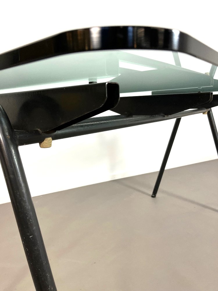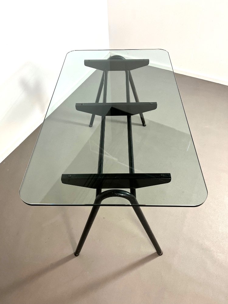 Mid-Century industrial desk with a glass top, France 1960s