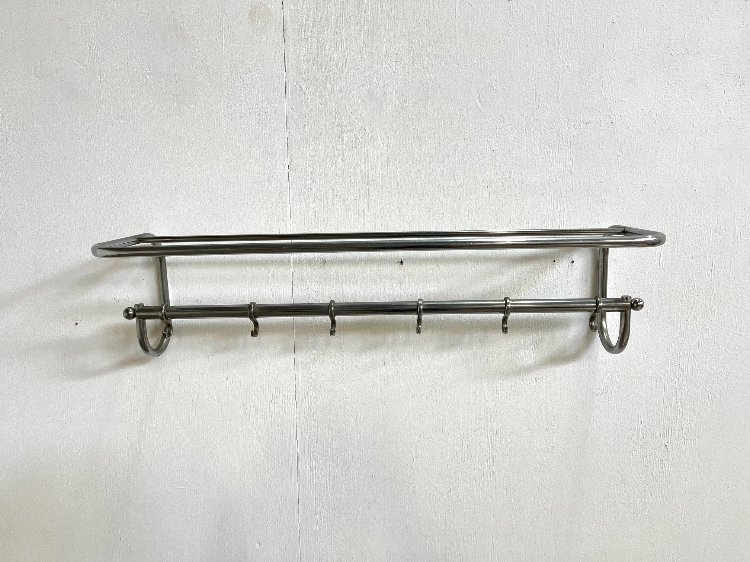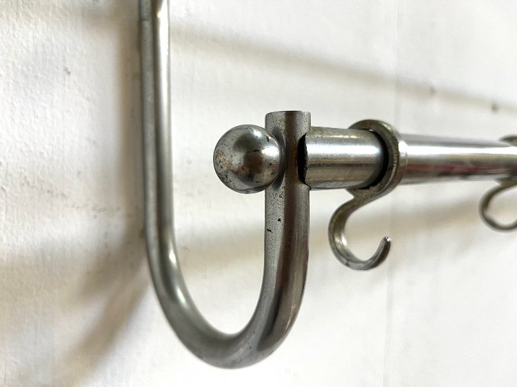 20th-century vintage design chrome wall coat rack, ca 1930.The coat rack has 6 hooks.