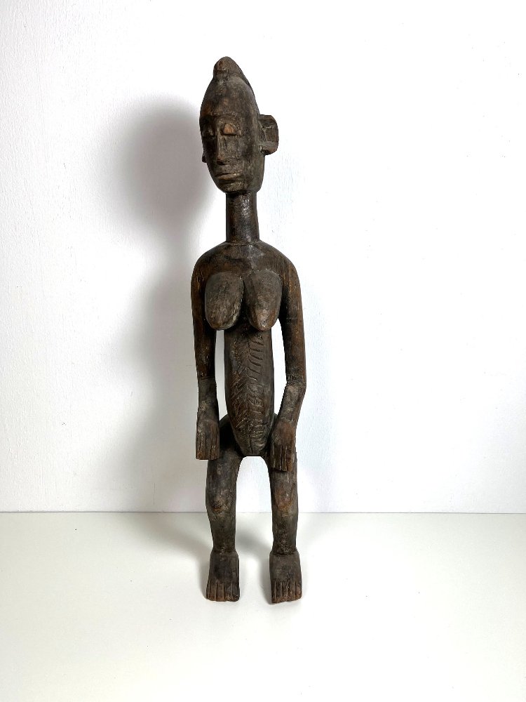 Vintage African Bamana tribal art, featuring a female figure from Mali.